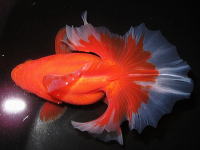 今日の写真の二歳雄魚は、第一回全国土佐錦魚品評大会の当歳魚の部で4位になった魚の兄弟魚で、尾の大きさもさることながら、返しが非常に大きくなってきて、非常に迫力のある魚で、今後を楽しみにしている魚です。