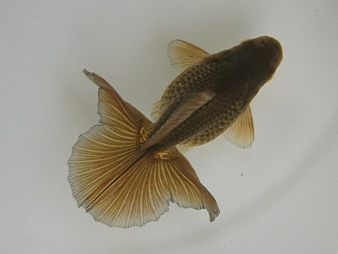 両親Cは、(ちょうど尾を開いた瞬間の写真で、ほとんど分かりませんが・・・)尾芯に巻き込み癖があるものの、尾が大きく雄らしい体型の魚です。