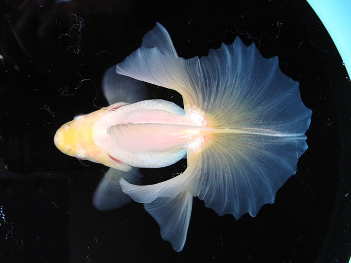 最も薄い青水のプラ舟(換水後) |