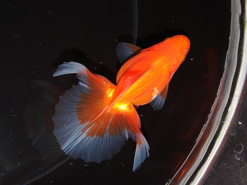| 雌は冬季に転覆していたが回復して、この日に5千個弱を産卵し、この掛合せでは800個の採卵とした。水温22℃で精子の状態も良く、卵は飴色。受精率・孵化率とも良く3日で孵化。孵化直前からは浮かべた洗面器で6日間過ごし、すぐに丸鉢へ移動した。初期には親骨が硬く流し気味が多い腹だったが、残ったものは非常に渡りが広く後ろも大きい丸手で、評価の高い鉢。 | 水温18℃で800個の採卵。孵化までの3日は浮かべた洗面器に。その後は40Lプラ舟で10日間飼育後、プラ丸鉢へ移動。孵化後2週間で1鉢30尾、3週間弱で10尾、1か月で4尾にまで減った成績(良魚の確率)の悪い鉢。8月末まではプラ丸鉢飼育。写真の魚は早くから顔の尖りと後ろの幅が素晴らしく、9月からはこの1尾のみを他の鉢へ移してモルタル丸鉢飼育とした。 | 水温21℃の産卵で400個程度を採卵。これも浮かべた洗面器で3日目の孵化となった。孵化後3日目のブラインシュリンプ給餌と合わせて40Lプラ舟に移動。稚魚のうちは尾肩のある柔かな尾を上手く振って泳ぐ感じだったが顔が悪くやや長手のものが目立った。残した魚も早くから褪色して濃い色を持つ素直なものが多い鉢であった。 | 水温は17℃と少し低い中、同居の3歳同士での産卵。精子の状態も良く500個を採卵。浮かべた洗面器で3日で孵化した後、モルタル丸鉢にすぐに移動。後ろが大きい良い尾を持つものが目立ったが、ほとんどが長手の魚であり、唯一写真の1尾が残った。丸手で尾筒の押さえが良く尾も柔らかで尖った顔に太い体と、早くから目立った魚。(7/1の姿) | 水温は20℃で。雌雄ともに十分に成熟している感じで、精子は濃い真っ白な状態で卵数も1500個以上と多い中、うち500個をこの掛け合せで採卵。これも浮かべた洗面器で3日で孵化となり、400尾を40Lプラ舟でスタート。稚魚の時点では尾が大きく良い魚が多かったが、孵化後10日で100尾に、20日目には50尾と早く選別が進んだ。 | |||||||||